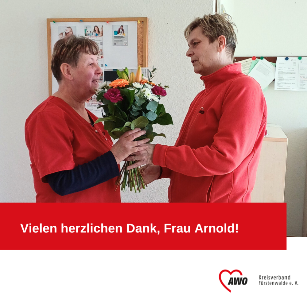 Wir gratulieren Ihnen, liebe Frau Arnold, herzlich zum 10-jährigen Dienstjubiläum und danken für Ihre wertvolle Arbeit in der Sozialstation.