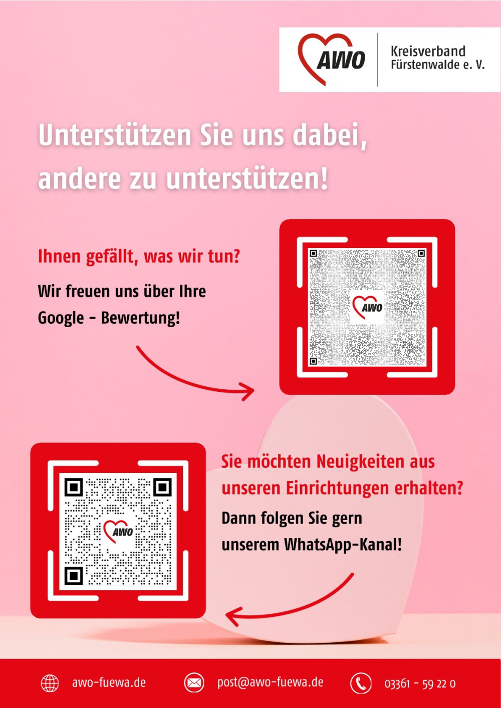 Gleichzeitig danken wir dem AWO Bezirksverband Potsdam e.V., dem AWO Regionalverband Brandenburg Süd e.V. sowie dem AWO Ortsverein Strausberg e.V. für die gezeigte Solidarität und Unterstützung.