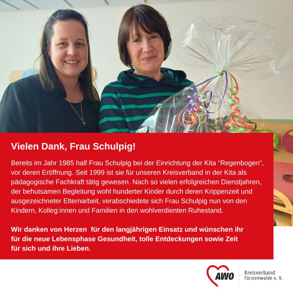 15 Jahre lang war Frau Ploke für den AWO Kreisverband Fürstenwalde e.V. im Einsatz und hat als liebevolle Erzieherin sicherlich hunderte Kinder durch deren Kita-Zeit begleitet.