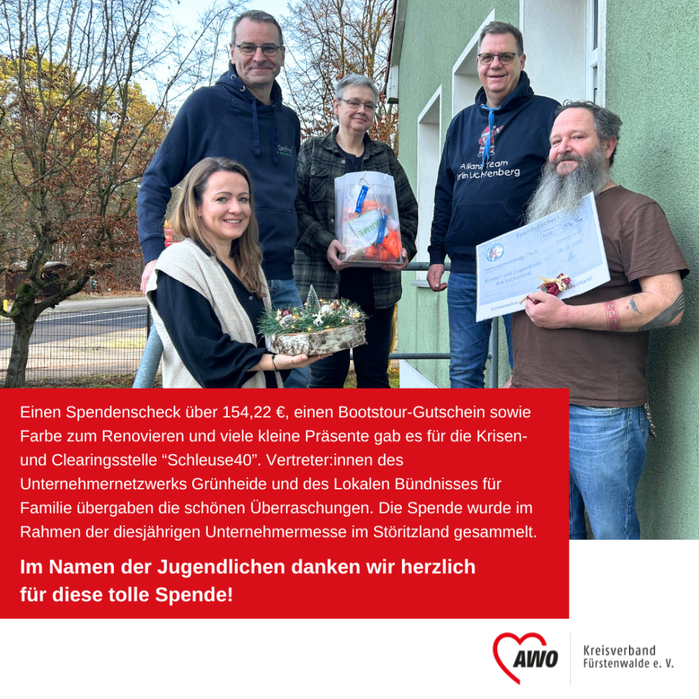 Spendenübergabe an die Krisen- und Clearingstelle "Schleuse40" Mo, den 22. Dezember 2025